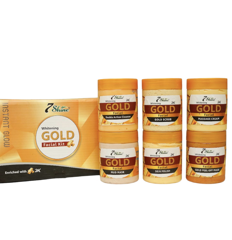 7 shine is a ultra-luxurious facial set is enriched with gold leaves particles, revives the inner layers of skin, replenishes and restores radiance. It penetrates deep inside, providing nourishment and improving blood circulation which imparts a long lasting metallic look to skin and rejuvenating youthful experience. Moreover, 7 Shine’s® 24K Gold Mask is a unique brightening gold mask which reverses the oxidation damage to the inner layers. This gives skin gold like radiance and a revitalizing effect with the acceleration of cell renewal. Suitable for all skin types.