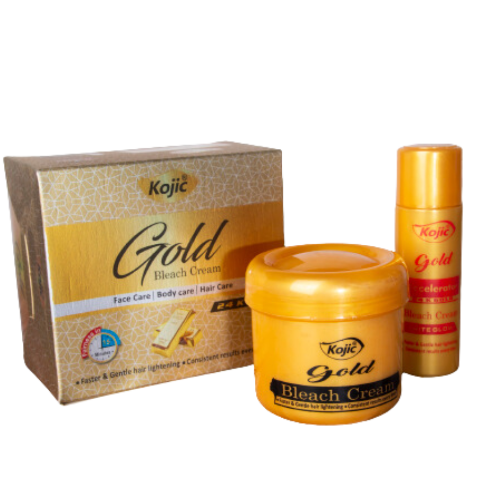 Kojic Gold Crème Bleach lightens dark, unwanted facial and body hair, so it blends beautifully into your natural skin tone making unwanted hair virtually invisible. It is a safe and effective formula that lightens & brightens the skin tone by removing any dead cells from the surface of the skin and stopping regeneration of any new pigmentation cells. The 3D effect of the bleach cream lightens skin hair.