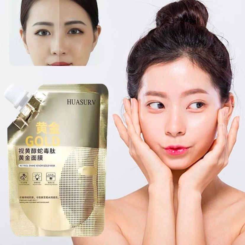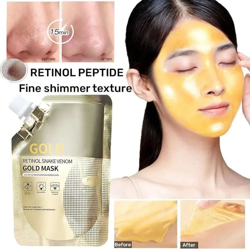 The **Korean Snake Venom 24K Gold Mask** is a luxurious skincare treat designed to rejuvenate and brighten your complexion. ✨ Infused with 24K gold and potent snake venom peptides, this mask helps to firm, tighten, and smooth the skin, reducing the appearance of fine lines and wrinkles. The combination of these powerful ingredients delivers deep hydration and revitalizes dull, tired skin, leaving you with a radiant, youthful glow. Perfect for achieving that spa-like facial at home! 🌟💆♀️