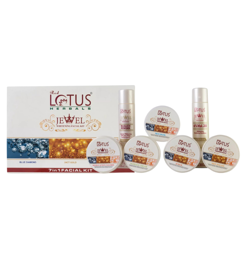 With our 7-in-1 Red Lotus Jewel Facial Kit, you have the luxury to get the salon-like glow at home. Lotus is high in Vitamin B and C, iron, and protein, all of which assist to keep the skin healthy and clean. Red Lotus Jewel Whitening 7-in-1 facial kit enhances the skin integrity, elasticity and makes skin radiant and young. The Bleach powder and volume 20 together reduces melanin to get a uniform and translucent complexion, gives you younger looking skin with visibly renewed moisture that lasts long. This facial kit has special lotus Skin Polish cream that can make the skin brighter, softer and minimize the appearance of acne, fine lines and spots. It also improves blood circulation and is effective in treating enlarged pores and blackheads.