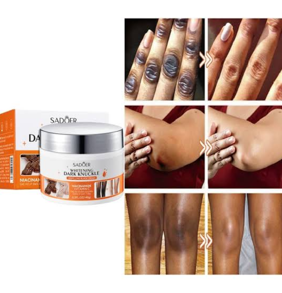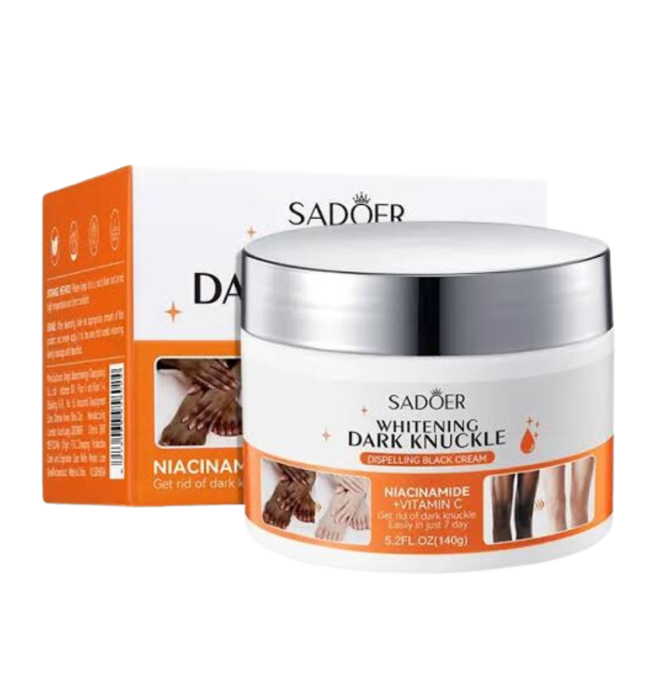 This specialized cream is formulated to target dark knuckles, elbows, knees, and other areas of hyperpigmentation. Enriched with potent whitening ingredients, it works to fade dark spots, even out skin tone, and promote a brighter complexion. The creamy texture absorbs quickly into the skin, delivering intense hydration and nourishment to help restore softness and smoothness. Elevate your skincare routine with Sadoer Whitening Dark Knuckle Dispelling Black Cream for visibly brighter and more even-toned skin.